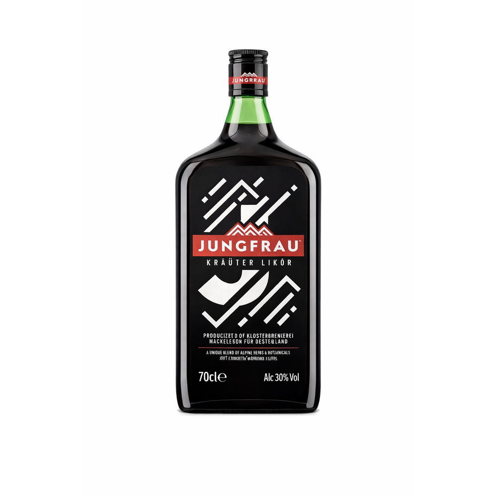 Jungfrau Kräuter Likör is a smooth herbal liqueur crafted from a balanced blend of aromatic alpine herbs, offering a rich, warming, and slightly bitter-sweet taste.